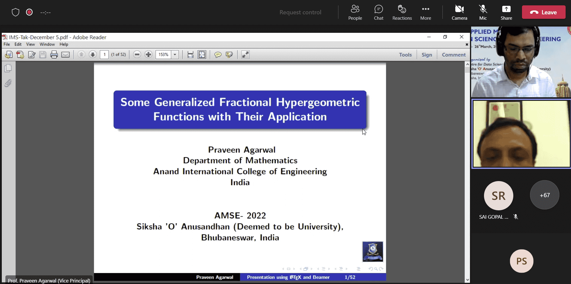 We have successfully conducted two international conferences (i.e., AMSE-2019 and AMSE-2022) at Siksha ‘O’ Anusandhan (Deemed to be University), Bhubaneswar, India.